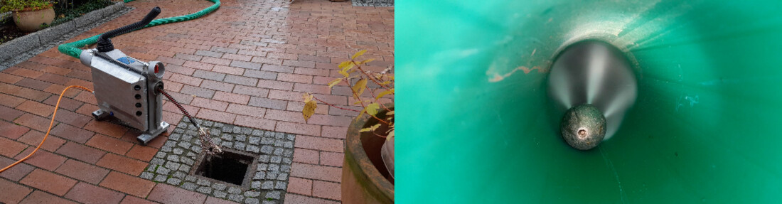 Mittels Rohrreinigungsmaschinen werden Verstopfungen, Verschmutzungen und Inkrustierungen an den Abwasserrohren beseitigt
